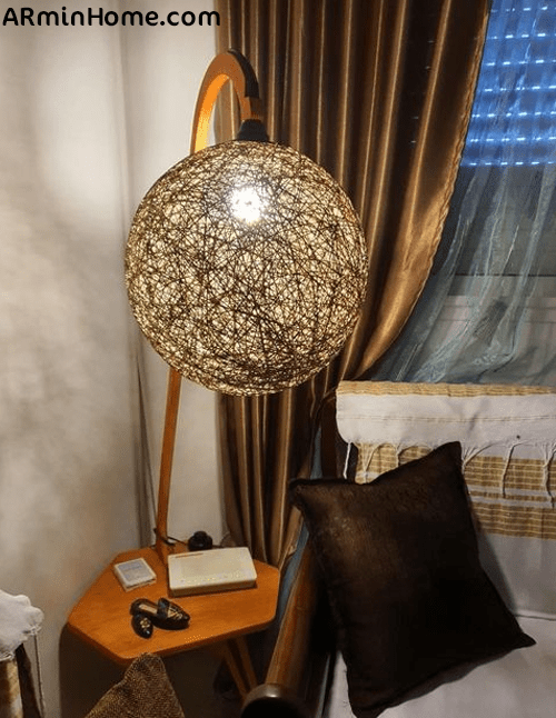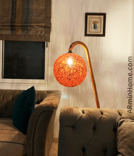 Apportez un éclairage chaleureux et tendance avec ce lampadaire avec Table en Bois