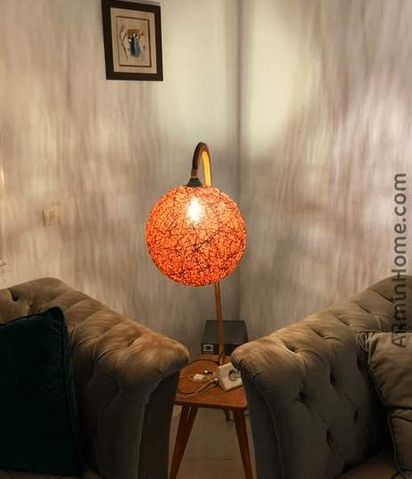 Élégant et élancé avec sa table en bois, il apporte un éclairage chaleureux dans votre salon