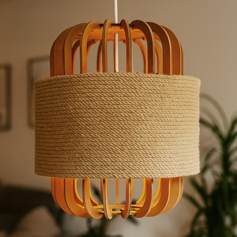 Les bénéfices pour les clients qui achètent une suspension Cordy de diamètre 40 cm artisanale en bois et fibre naturelle chez Armin Home peuvent inclure: